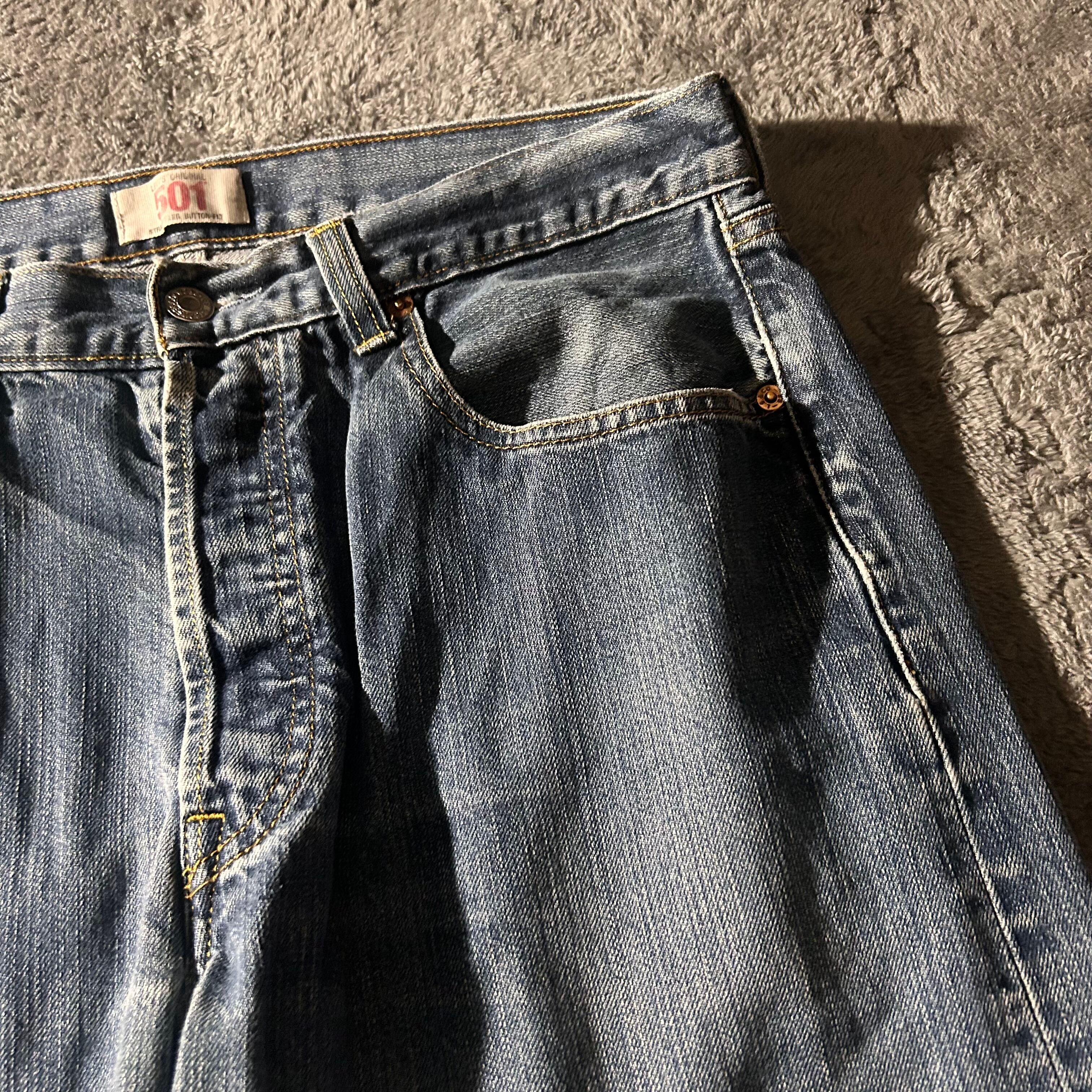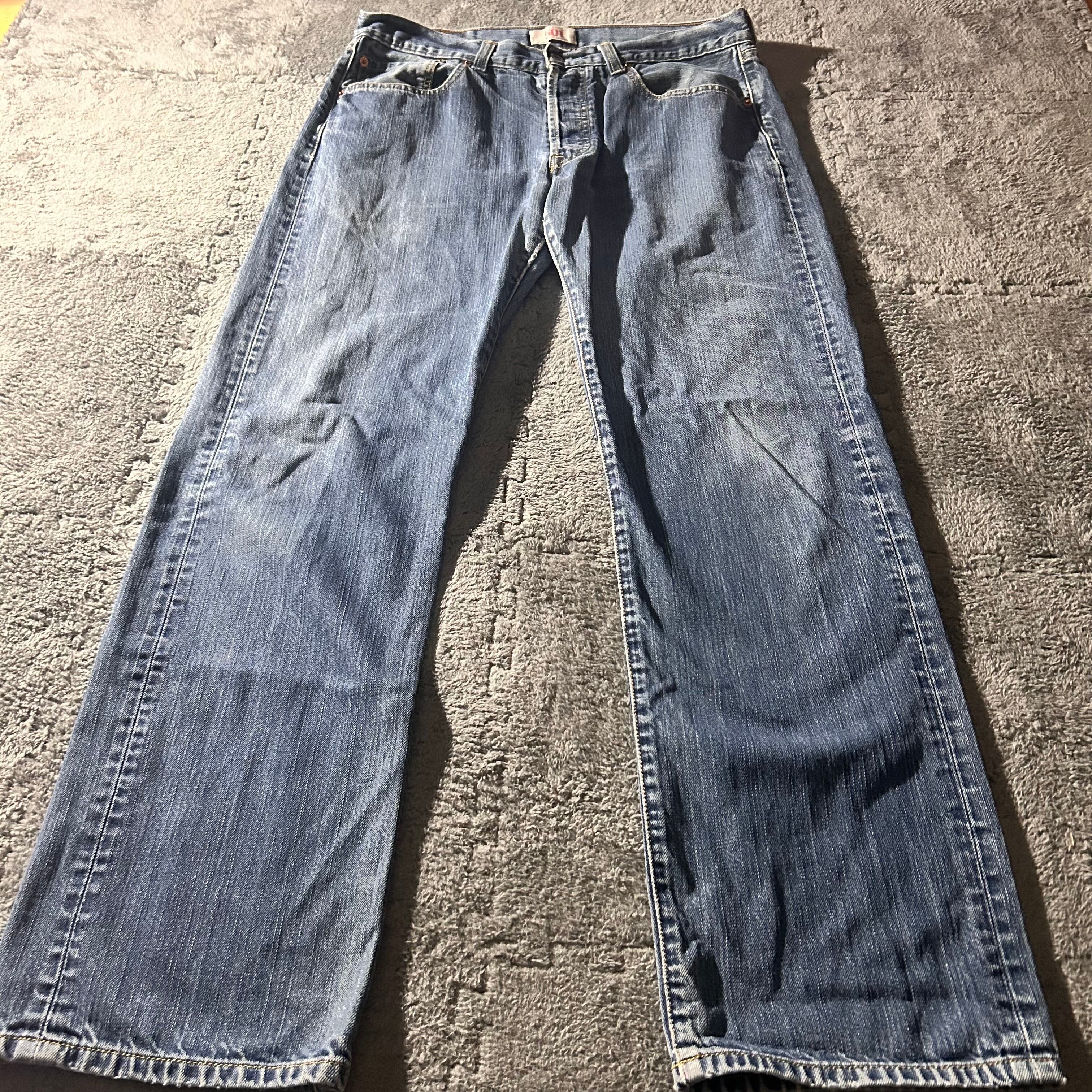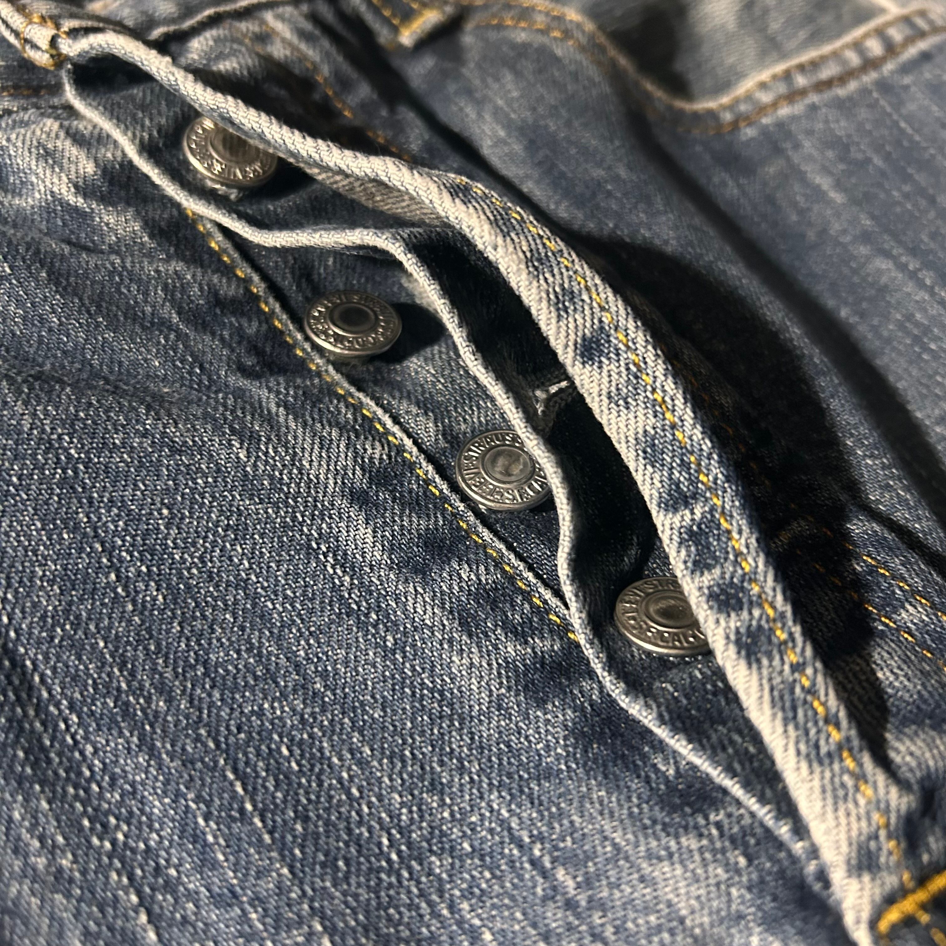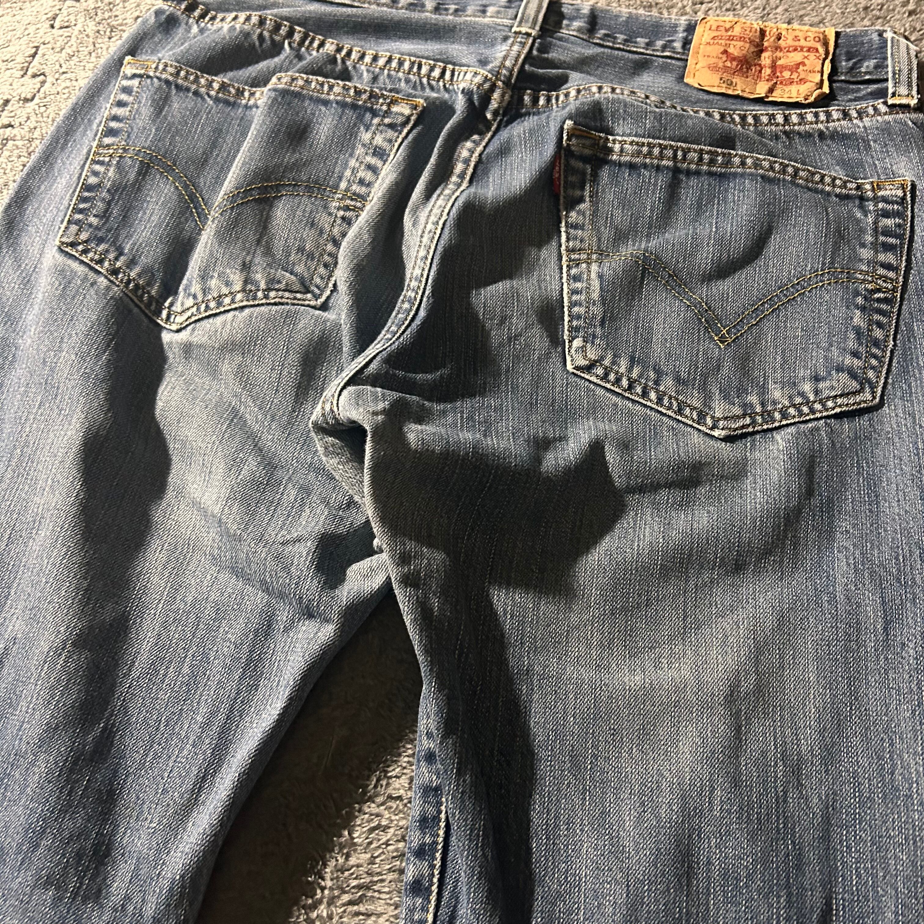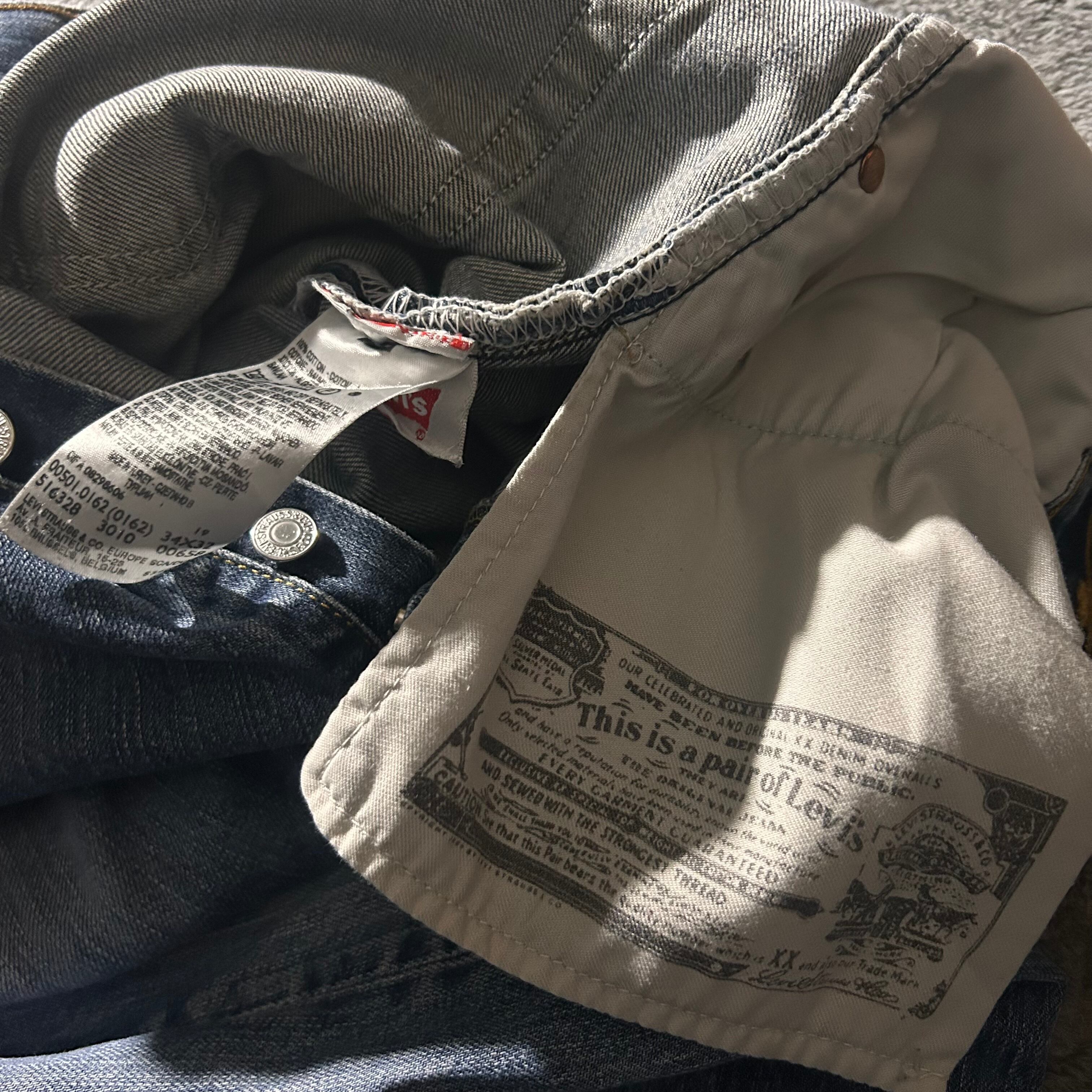 Levi's 501 ストレートデニム、ライトブルーの色合いで、カジュアルスタイルに最適。